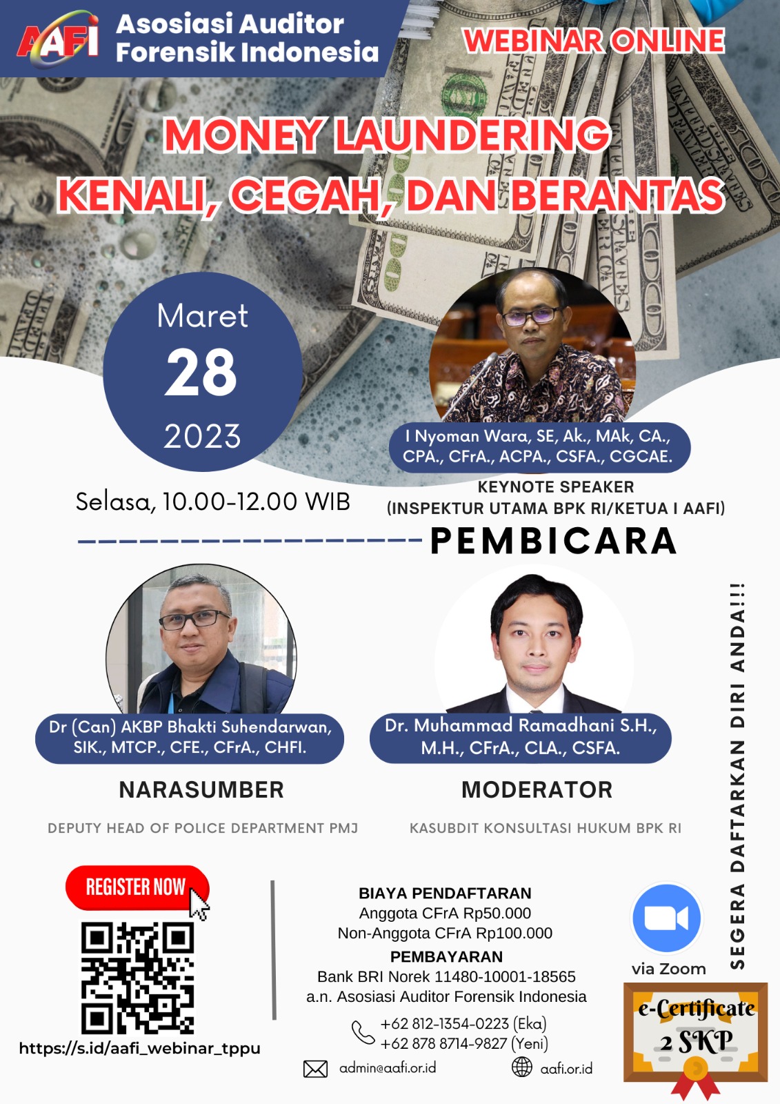 Asosiasi Forensik Auditor Indonesia (AAFI YEBADOLMA) mengundang Bapak/Ibu dalam Webinar Online dengan Tema MONEY LAUNDERING, KENALI, CEGAH, DAN BERANTAS
